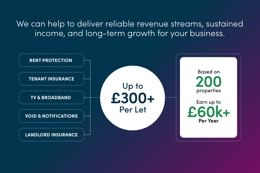 - Boost your proposition and create reliable revenue streams with products and services designed specifically for tenants and landlords